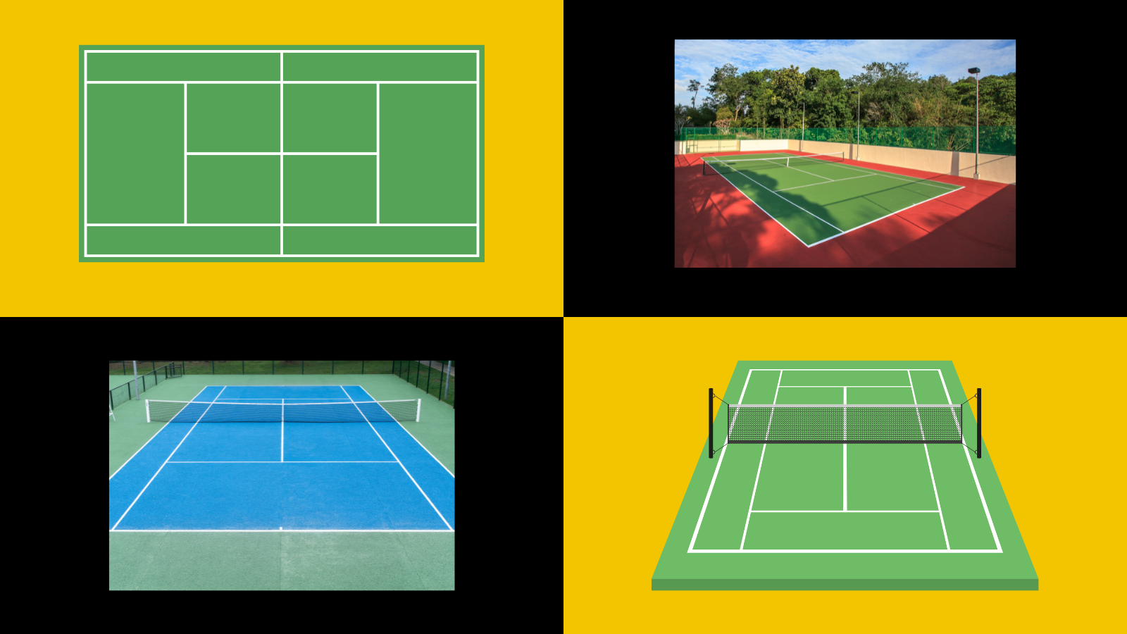 Tennis has to be one of the most frequently played racket sports in the world. It is a popular spectator sport all over the world and has millions of recreational players. The Grand Slam tournaments, including the Australian Open, the French Open (Roland-Garros), Wimbledon, and the US Open, are considered to be the most prestigious events in the tennis calendar. The four tournaments are played on three different courts, namely hard courts, clay courts, and grass courts. Each type of court offers a unique playing experience and requires different strategies and skills. However, apart from the players' intense competition and high level of athleticism, there is one aspect of these competitions that they all have in common: the court dimensions. In order to understand the game better, it is important to know the dimensions of a tennis court.